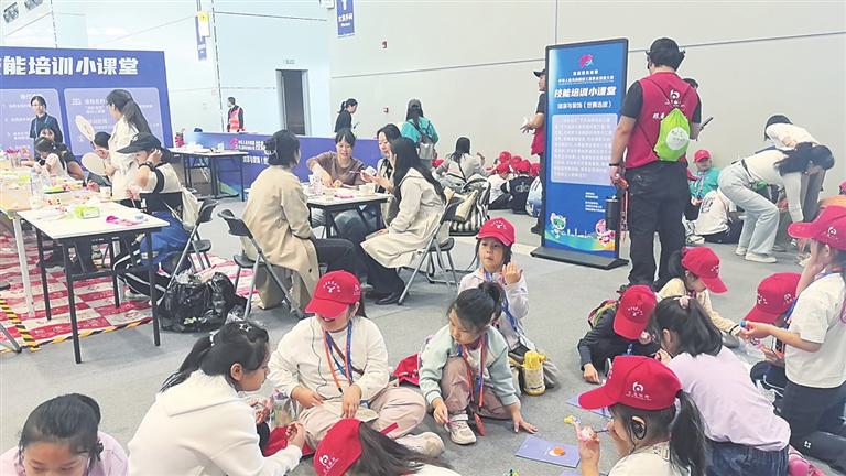 “能带领孩子们亲临现场,感受国家级技能大赛的魅力,非常难得。”焦作市硕果托教中心的蒋老师站在一旁,看着孩子们投入的模样,满脸欣慰。她告诉记者,油漆与装饰听起来很专业,但技能培训小课堂把它变得特别接地气,让孩子们通过体验,培养对色彩的感知,提升动手能力,感受到技能背后的创造力与美感,这种体验无疑比书本知识更鲜活。